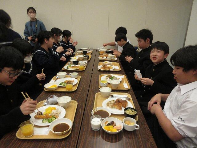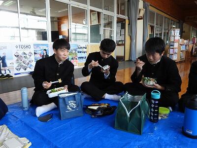 10月27日(月):都北中学校音楽大会に参加するため、3校時終了後、全員多目的室に集まってお弁当を食べました。それぞれ工夫して作ったお弁当を美味しそうに食べる姿が見られました。お弁当を食べた後、都城市総合文化ホール(MJ)に移動して、都北中学校音楽大会に参加しました。西岳中・笛水中と三校合同で「やさしさにつつまれたなら」「僕のこと」を発表しました。素晴らしい合唱を披露してくれました。