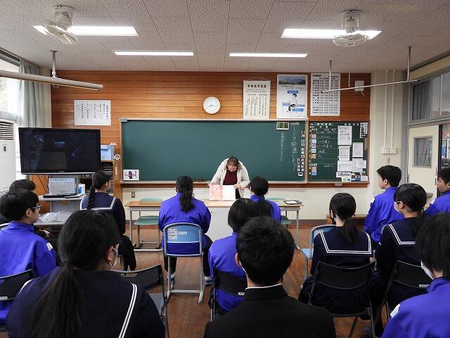 11月19日(水):朝活の時間に図書館サポーターの読み聞かせを実施しました。童話は、作家や編纂者が、口承で伝わってきた話をまとめたり、創作したりした作品であることの説明をした後、『雪女』の読み聞かせをしてくださいました。生徒は、真剣に聞き入っていました。