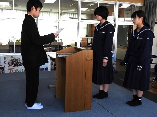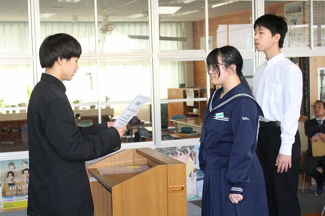 ◎ 新生徒会三役に任命証授与