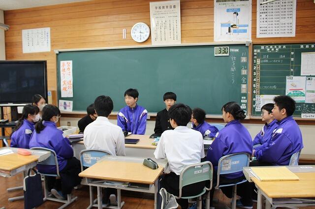 12月2日(火):西岳中・笛水中の1・2年生が夏尾中に集まって、3校合同修学旅行事前学習会を開催しました。学校ごとに自己紹介をした後、修学旅行のしおりの読み合わせや行程の確認などを行いました。出発まであと5日、体調管理に気を付け、思い出に残る修学旅行にしましょう。