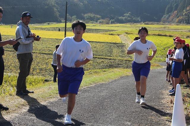11月28日(金):牛之脛公民館長大村様宅の庭をお借りして、夏尾小中合同持久走大会を開催しました。生徒たちは、この日に向けて保健体育の授業やステップアップタイム(SUT)の時間に一生懸命練習に取り組んできました。全員完走を目標にスタートし、小学生や保護者の声援にも後押しされて、目標を達成することができました。応援をいただいた保護者の皆様、会場をお貸しいただいた大村様ありがとうございました。