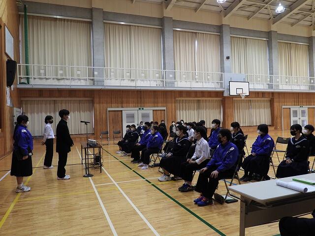 3年生代表Kさんは、受験に向けて、目標を高く設定し、現状に満足せず、何が足りないのかしっかり考えていきたいと発表してくれました。