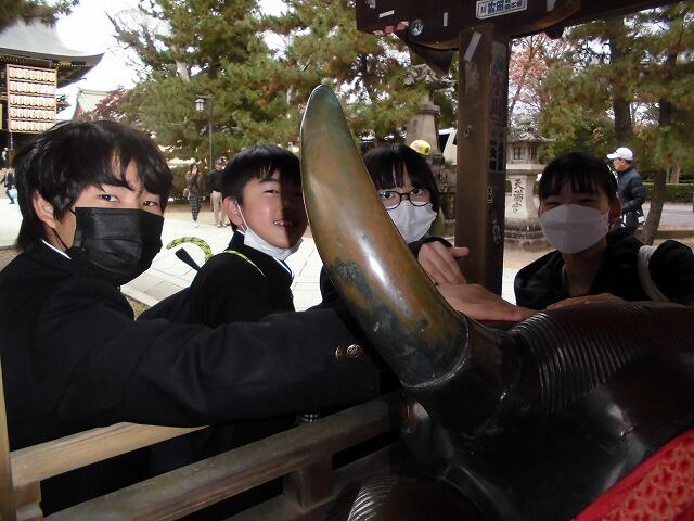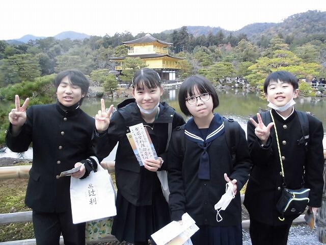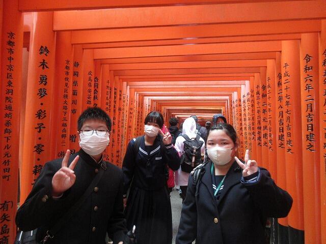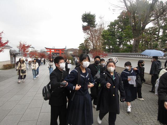 12月8日(月):修学旅行2日目は、フェリーで大阪南港到着後、京都に移動して、班別自主研修を行いました。伏見稲荷大社をスタートして、事前学習で調べた名所を巡って、金閣寺がゴールです。その後、大阪に移動して、ホテルに宿泊しました。