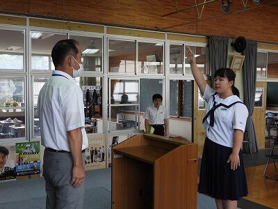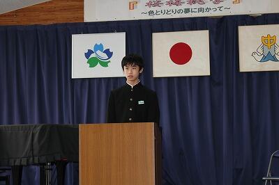 新3年生のOHさんは、苦手教科を克服して、進路を実現すること、後輩たちの見本になること、そして県大会出場を目標に部活動を最後までがんばること、「夢や目標をもってたくさんのことに挑む!」ことを述べました。