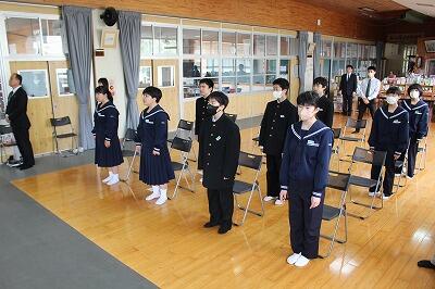 校長先生からは、学校のお正月は本日。1年間がんばろうと思ったことを自分のペースでがんばってください。「命を大切に」、「夢をもつこと」そして、最後に「過去は変えられないが、未来は変えられる」という言葉がありますが、「過去も変えられます!」過去のマイナスをプラスに変える、少しずつ成長する1年にしてください、とお話されました。