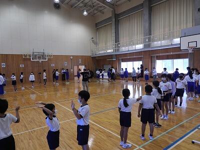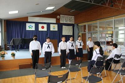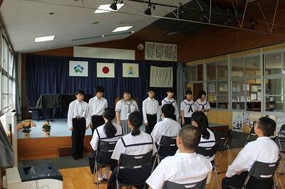 全校生徒がそろって夏尾中学校本格的にスタートです!