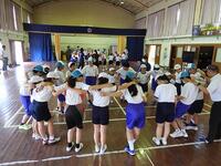 続いて全校生徒が円になって自己紹介。先生方も参加します。