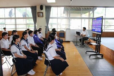 12月3日(火)全校生徒を対象に、市の事業を活用し、「夢見る課外授業」を実施しました。お二人の講師の先生の仕事への思いや経緯を聞き、将来について考える良い機会となりました。川畑板金の川畑様、ひろがる子どもの未来研究所の別府様、貴重なお話をありがとうございました。