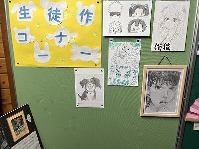 本校正面玄関にM先生の素敵な作品たちが展示してあります。本校に寄られた際はぜひ鑑賞してください。