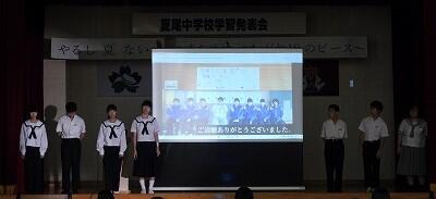 3月26日(火)令和5年度の修了の日でした。1年生代表Kさん、2年生代表OSさんがそれぞれの学年での反省と進級に向けての発表をしてくれました。それぞれの成長を感じる立派な発表でした。振り返るとあっという間の1年でしたね。生徒の皆さんそれぞれが心身ともに大きく成長した1年でした。今年1年を支えてくださった保護者の皆様、地域の皆様、夏尾中学校を応援してくださっている全ての皆様に感謝します。ありがとうございました。令和6年度もどうぞよろしくお願いいたします。