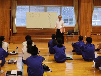 10月24日(木)、25日(金)、31(木)、11月7日(木)、14日(木)の計5回にわたり、宮崎県弓道連盟会長の重信先生を講師にお招きし、弓道の授業を実施していただきます。下は第1回目、第2回目の授業の様子です。生徒たちは本物に触れ、意欲的に授業に臨んでいます。重信先生よろしくお願いします!
