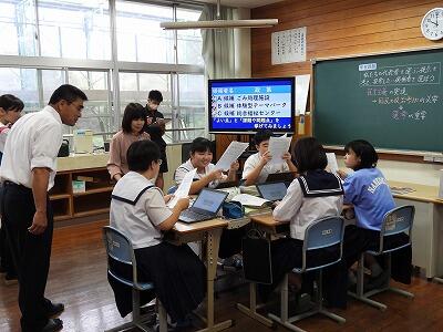 今年度本校は、研究主題「自分の意見や考えを表現する生徒の育成~個に応じたきめ細かな指導を通して~」のもと、研究を進めています。研究内容のひとつである授業改善研究として、全先生方が研究授業を実施しています。10月は4名の先生方の研究授業が終了し、11月に2名、12月に1名の先生の研究授業が計画されています。子供たちが主役の授業、ICTを活用した授業改善を目指し、先生方もがんばっています。