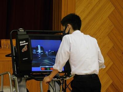 6月11日(金)の5,6校時に交通教室を実施しました。今年も昨年に引き続き、都城交通安全協会から2名、西岳駐在所、地域交通安全指導員の方に来ていただきました。今年は生徒全員が自転車シュミレーターを体験しました。ブレーキをかけるときに右からブレーキをかける傾向があったようです。ブレーキをかける時は、左→右の順でかけましょう。