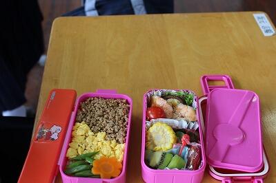 今日は弁当の日でした。それぞれ、食育講話や、家庭科の授業で学んだことを生かして弁当を作ってきました。午後からの小中合同クリーン作戦に向けて栄養補給十分です。2回目の弁当の日が楽しみです。さて、どんな弁当を作ってくるかな。