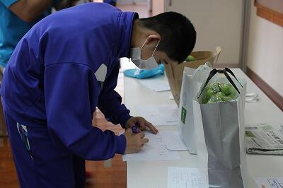 今日の給食はコッペパン、牛乳、千切り大根入り焼きそば、青じそドレッシングサラダでした。今日のよく噛む食材は千切り大根です。先生方、生徒の皆さん、歯ごたえを感じながら30回噛めましたか?今日はベジ活の日で、