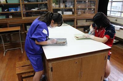 今日の1年生の理科の授業ではイカの解剖をしていました。イカは1杯、2杯と数えるみたいです。私は解剖はしたことはありませんが、生徒は初めての解剖に興味津々でした。