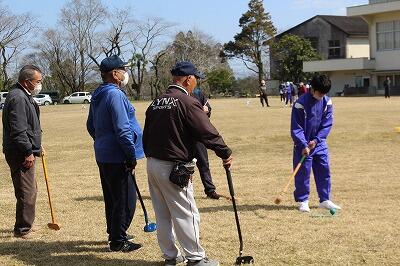 3月8日(金)の午後は今年度2回目のふれあいグラウンドゴルフ大会でした。22名の地域の方々、保護者3名、生徒で楽しみました。プレイを教えていただいたり、褒めていただいたりしてみんな笑顔で楽しんでいました。グラウンドに久しぶりに歓声があがり、何より地域の方々の笑顔に元気を頂きました。私達も負けてはいられません。次回も楽しみにしています!!