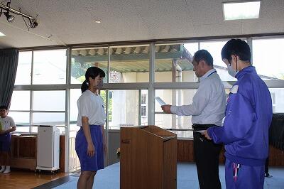 新3年生のOHさんは、苦手教科を克服して、進路を実現すること、後輩たちの見本になること、そして県大会出場を目標に部活動を最後までがんばること、「夢や目標をもってたくさんのことに挑む!」ことを述べました。