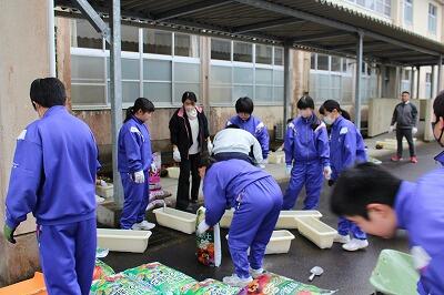 1月31日(水)卒業式に向けて、全学年でプランターに花植えを行いました。30個のプランターにそれぞれが丁寧に植えていきました。1・2年生は3年生に感謝の気持ちを込めて、3年生にとっては最後の美化活動、いろんな思いをもって植えたことと思います。みんなで植えた花で3年生を送り出します。