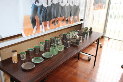 本校正面玄関にM先生の素敵な作品たちが展示してあります。本校に寄られた際はぜひ鑑賞してください。