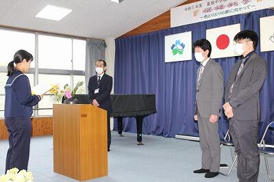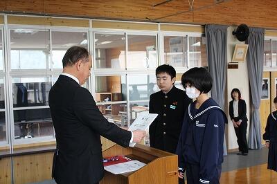 旧学習委員長に校長先生から感謝状が授与されました。TMさんありがとう。
