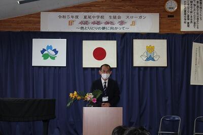 3月26日(火)令和5年度の修了の日でした。1年生代表Kさん、2年生代表OSさんがそれぞれの学年での反省と進級に向けての発表をしてくれました。それぞれの成長を感じる立派な発表でした。振り返るとあっという間の1年でしたね。生徒の皆さんそれぞれが心身ともに大きく成長した1年でした。今年1年を支えてくださった保護者の皆様、地域の皆様、夏尾中学校を応援してくださっている全ての皆様に感謝します。ありがとうございました。令和6年度もどうぞよろしくお願いいたします。