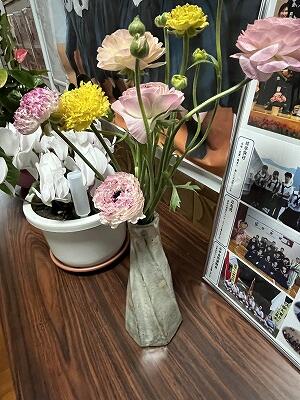 他にも、ありとあらゆる場所に飾らせていただきました。明日の入学式、2・3年生14名と、職員とたくさんの色とりどりのラナンキュラスのお花で新入生6名を迎えます。