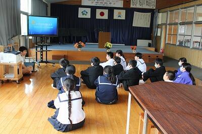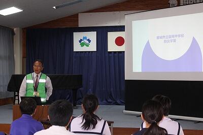 防災出前講座では、「NPO法人宮崎県防災士ネットワーク」の平井様をお招きし、自然災害、防災について等、専門的で貴重なお話を伺うことができました。平井様ありがとうございました。