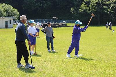 5月10日(金)第69回ふれあいグラウンドゴルフ大会を行いました。夏尾・御池地区の方々13名、保護者4名も参加していただきました。今週初め、天気が心配されたのですが、晴天に恵まれ、空の青と草木の緑に囲まれ清々しい空気の中、生徒は、地域の方や保護者との会話を楽しみながらプレーしました。気温が高く体調面も心配しましたが、地域の方々を始めみなさん元気いっぱい!ホールインワンやナイスプレーに歓声があがっていました。夏尾・御池地区の方々、保護者の皆様、大変お忙しい中、ご参加ありがとうございました。