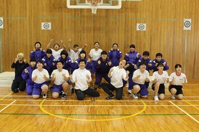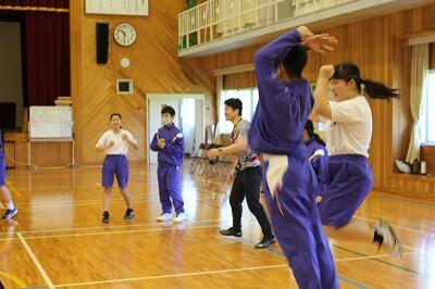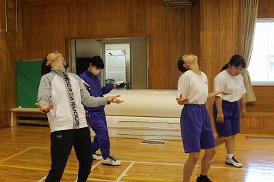 5月9日(木)学校における文化芸術鑑賞・体験推進事業で、「んまつーポスカンパニー」のM様、K様、N様を保健体育の授業にお招きし、ダンス指導を行って頂きました。体全身を使ってみんなで話し合った物をイメージしながら踊る。参加した生徒全員が、表現することの楽しさを体全体で感じながら本当に楽しそうに踊っていました。今月16日、29日とあと2回来校し、指導してくださいます。んまつーポスカンパニーの方々ありがとうございました。次回もよろしくおねがいいたします。次が楽しみでわくわくです!