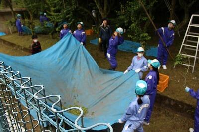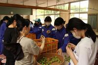 5月20日(月)恒例になっている校庭の梅収穫を行いました。地域の方の話によると、今年度は寒が強かったためか、地域周辺の梅は不作とのこと。昨年は立派な実をつけてくれた道路側の南高梅の木には、まったく実がついていない状態でしたが、プール周辺の梅の実は、辛うじて収穫できる状態でした。今年度の収穫量は52.5kgで昨年度の半分でした。生徒たちの中には、梅収穫をはじめて体験する生徒もおり、実を落とす担当、実を拾う担当に分かれて、一生懸命取り組んでいました。