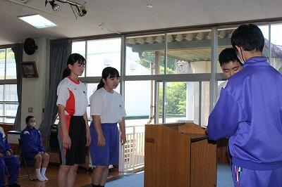 新生活委員長OHさん 新学習委員長TRさんにYH生徒会長より任命証が渡されました。