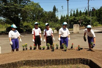 5月29日(水)校舎前の花壇に全校生徒で花植えを行いました。暑い中で大変でしたが、みんな笑顔で楽しみながら協力して作業しました。「大変なことも笑顔で楽しんでやる!」夏尾中生の素敵なところです。