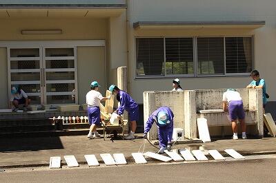 午後は「小中合同クリーン作戦」。御池・夏尾地区にある各公民館の清掃や小規模特認校看板周辺の清掃を10カ所に分かれて児童生徒・保護者できれいに清掃しました。