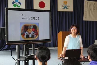 5月14日(火)今年度も山田給食センターの栄養教諭O先生に食育講話をしていただきました。第1回目の弁当の日は6月16日(日)の参観日です。