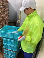 収穫した実を選別して1kgずつ袋詰めします