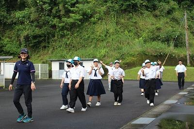 全校生徒がそろって夏尾中学校本格的にスタートです!