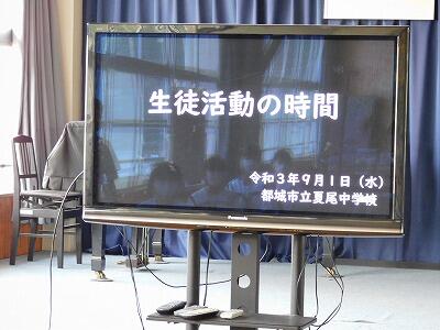 今日は、10月2日、3日に行われる令和3年度都城地区秋季体育大会の選手激励会が行われました。進行を3年生のK君、大会に出場する選手一人一人が、目標を発表、選手激励の言葉を3年生のYさん、選手宣誓をHさんが務めました。今回初めて試合に出場する人もいます。コロナの影響で練習量は少ないですが、今まで練習してきた成果を存分に発揮してきてください。みんなが応援しています。Do your best !