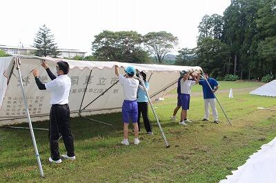 合同練習に向けての運動場の整備とテントたて