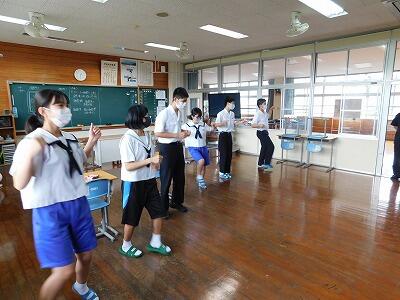 今日から創作ダンスの練習を始めました。創作ダンス担当の3人がまず覚え、それを今日は1年生と2、3年生に分けて教え合いました。最初の練習にしてはみんなうまく踊れていました。練習時間は少ないですが、ダンスを教え合って練習している風景が微笑ましかったです。