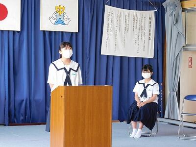 今日は、1学期の終業式でした。MさんとHさんが堂々と原稿を見ないで1学期の反省を述べてくれました。その後、校長先生の話、校歌斉唱をしました。校歌斉唱ではHさんが、見事なピアノ伴奏をしてくれました。その後、N先生が学習面の話を、S先生が生活面の話をしてくれました。生徒の皆さんよく頑張った1学期でした。2学期も生徒の皆さんの活躍を期待しています。