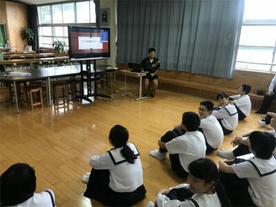 市危機管理課の園田さんが来校してくださいました。私たちにわかりやすく、防災についての話をしてくださいました。とてもためになりました。まずは、自分の身は自分で守る!ですね。