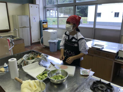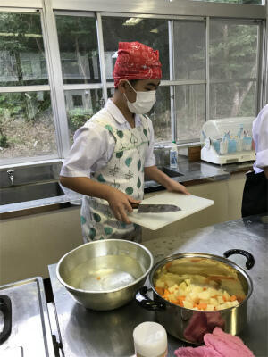 御池青少年自然の家にて、ボランティア。三年生四人が参加しました。