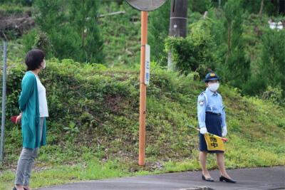 写真の右側の方は、夏尾地区の交通指導委員さんで、