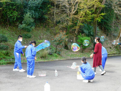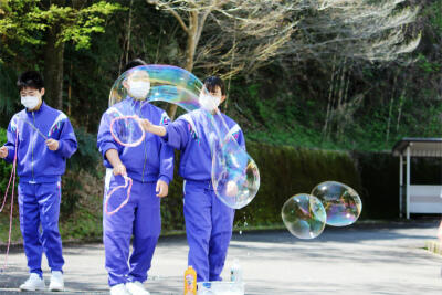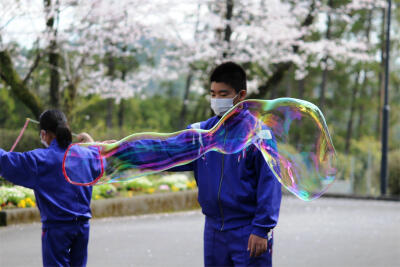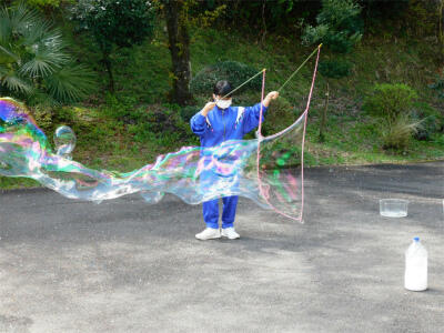 とにかくビックリ!!生徒達もとても思い出に残る授業になったことと思います。私も、授業を受けたかった!!こんなシャボン玉が実際にできるとは!!