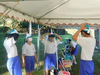 「今日はみんながんばろうね。ちゃんとはちまき結べてる?」