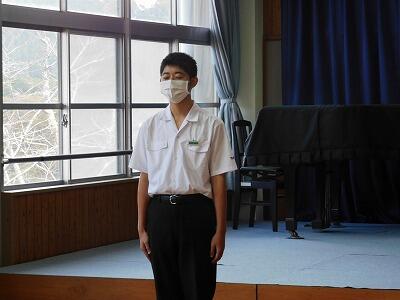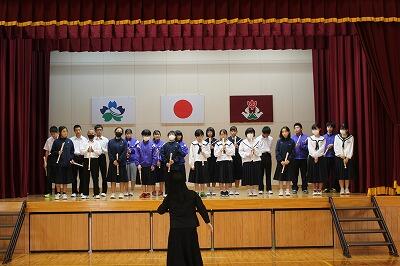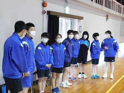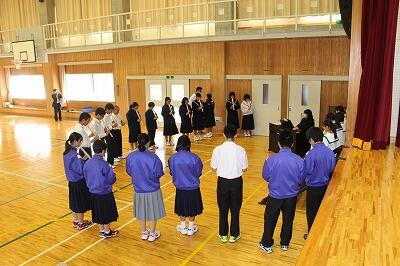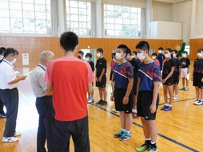 10月22日(金)に10月30日(土)、31日(日)に行われる宮崎県中学校秋季体育大会の激励式が行われました。夏尾中学校は10月31日(日)に女子シングルスでHさん、男子ダブルスでS君、Y君ペアが出場します。日頃の練習の成果をしっかり発揮してきてほしいと思います。