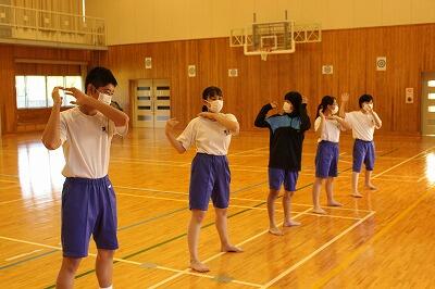 昨日の保体の授業は、学習発表会で披露するソーラン節の練習をしました。初めて踊る生徒もいるようですが、教え合いながら練習しています。学習発表会当日が楽しみです。