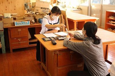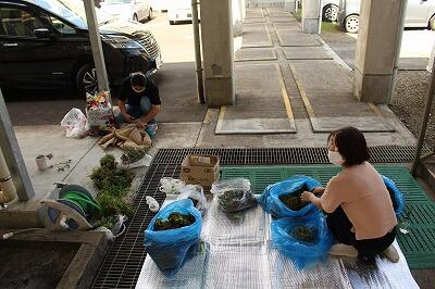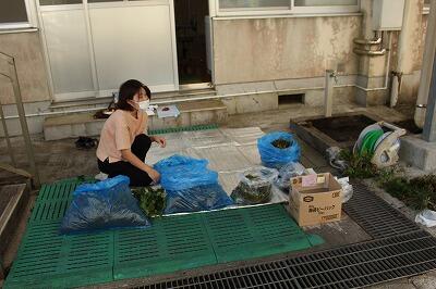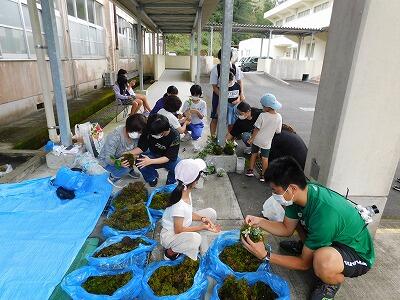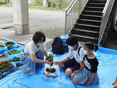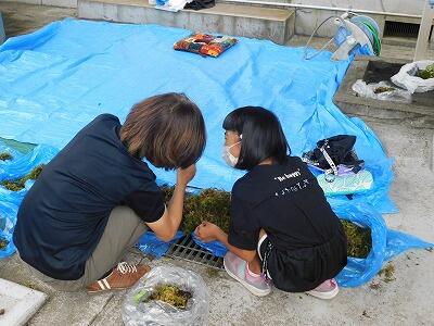 今日は午前中に、10月10日(日)に行う予定の「テラリウム&苔玉作り」の準備にUさんとYさんが学校に来られました。コロナ禍で諸行事が縮小や中止になることが多い中、癒やしの小空間をつくることを目的に企画されました。