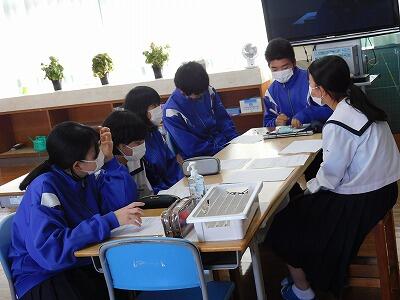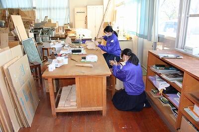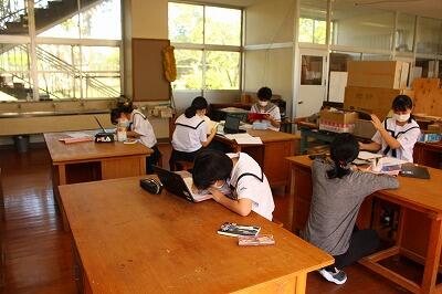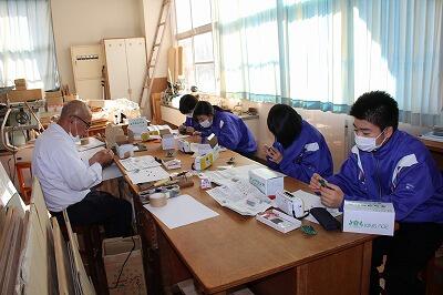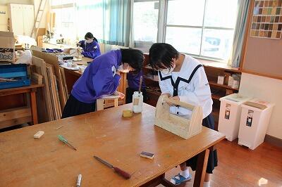 1年生の技術の授業は小物入れ作りでした。今日は把手の組み立てをしました。みんな黙々と作業に取り組んでいました。